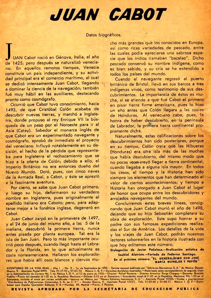 Juan Cabot descubridor de América del Norte - Aventuras de la Vida Real - Revisteria Ponchito