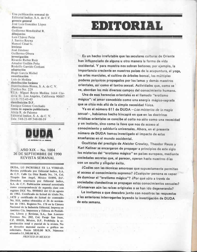 El misterio del erotismo mágico - Duda - Revisteria Ponchito