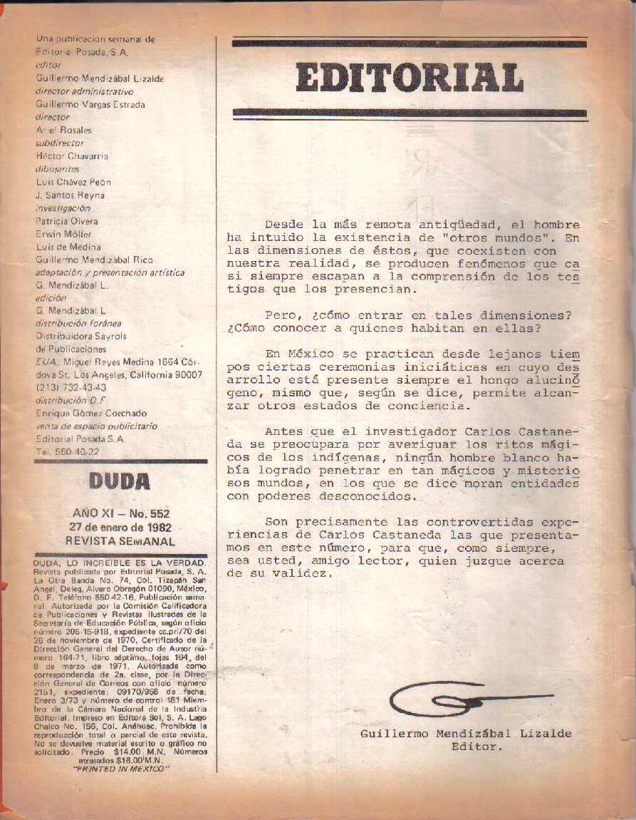 Las experiencias de Carlos Castaneda - Duda - Revisteria Ponchito