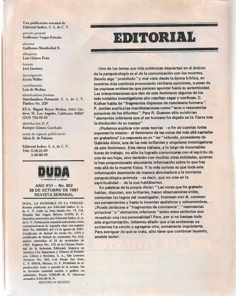 Comunicación con los vivientes de ayer - Duda - Revisteria Ponchito