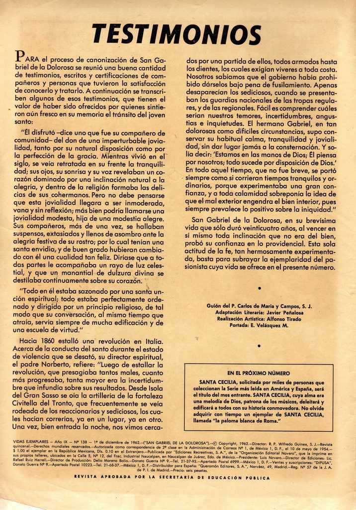 San Gabriel de la Dolorosa - Vidas Ejemplares - Revisteria Ponchito