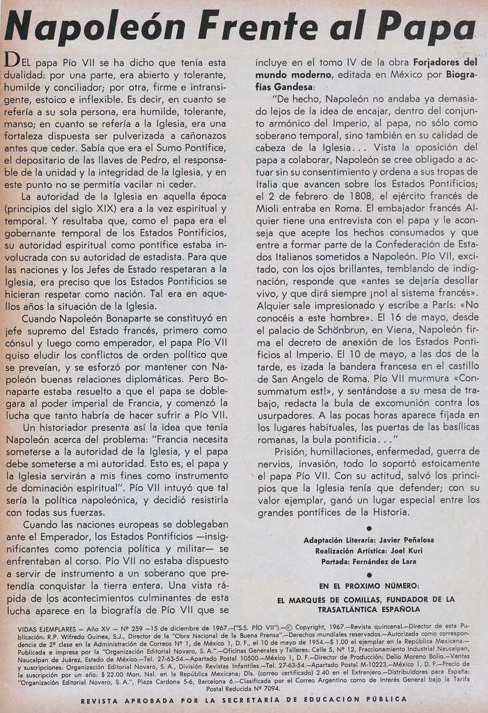 El Papa Pío VII - Vidas Ejemplares - Revisteria Ponchito