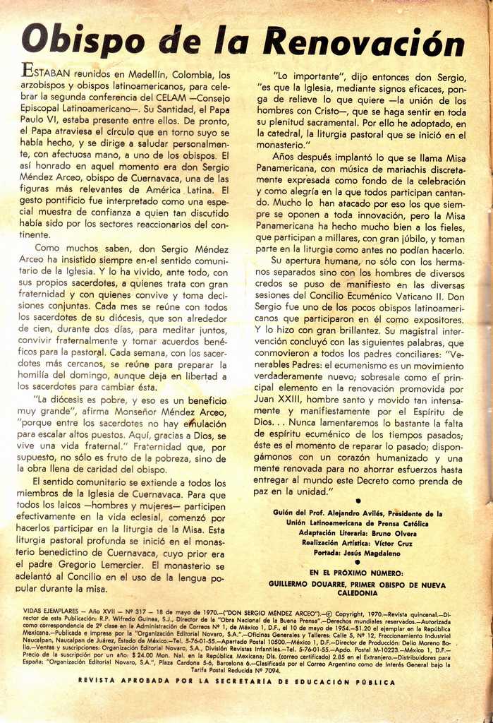 Don Sergio Méndez Arceo - Vidas Ejemplares - Revisteria Ponchito