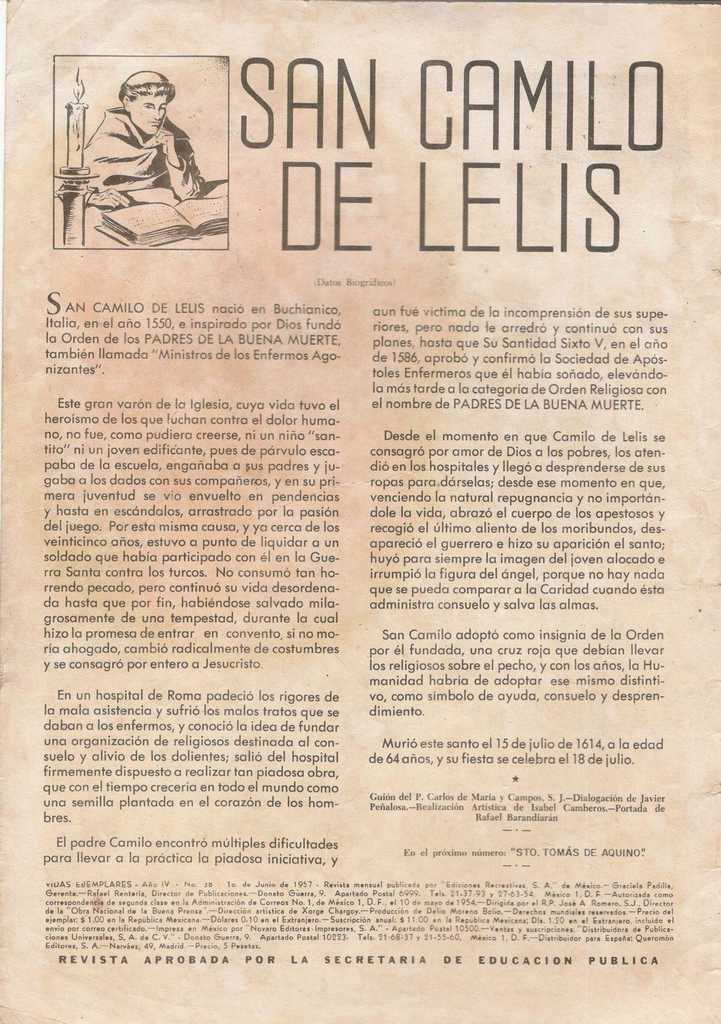 Camilo de Lelis - Vidas ejemplares - Revisteria Ponchito