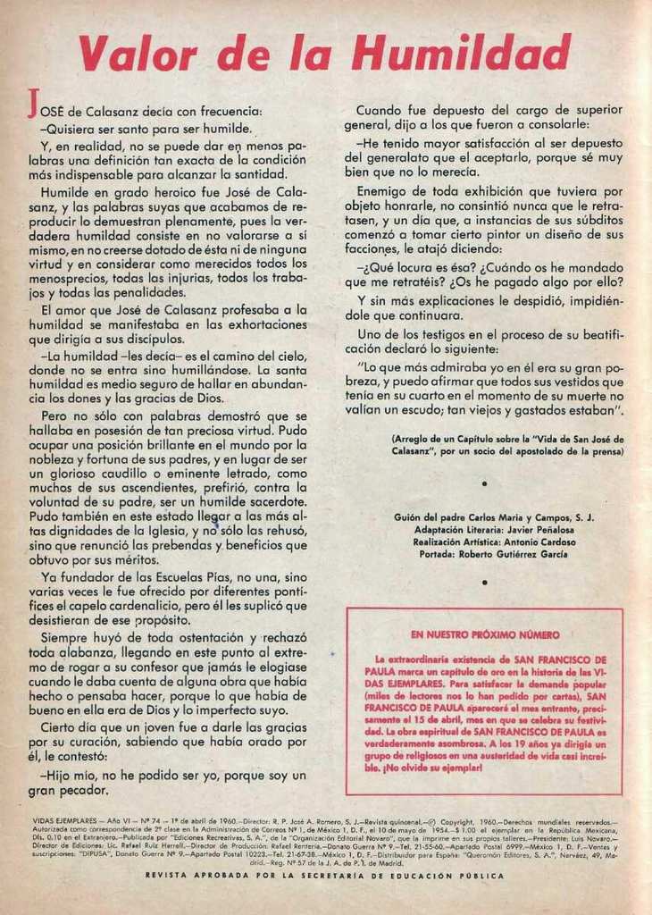José de Calasanz - Vidas ejemplares - Revisteria Ponchito