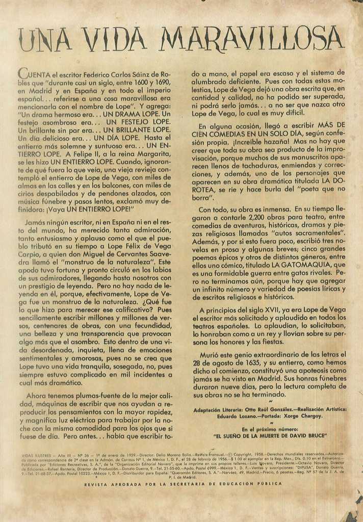 de Vega - Vidas ilustres - Revisteria Ponchito