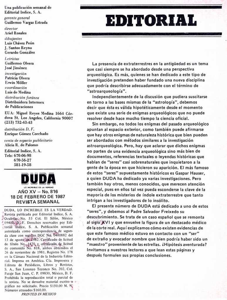 Encuentro con un maestro extraterrestre en el siglo XVI - Duda - Revisteria Ponchito