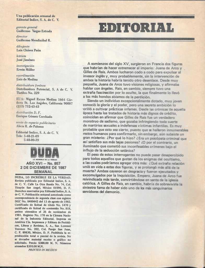 Las abominaciones sexuales de Gillés de Rais - Duda - Revisteria Ponchito