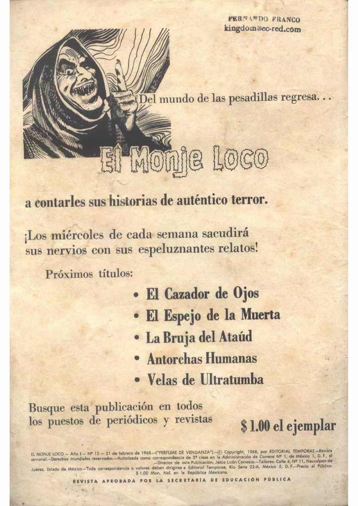 Dolor de venganza - El Monje Loco - Revisteria Ponchito