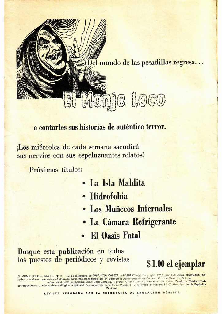 Cabeza macabra - El Monje Loco - Revisteria Ponchito